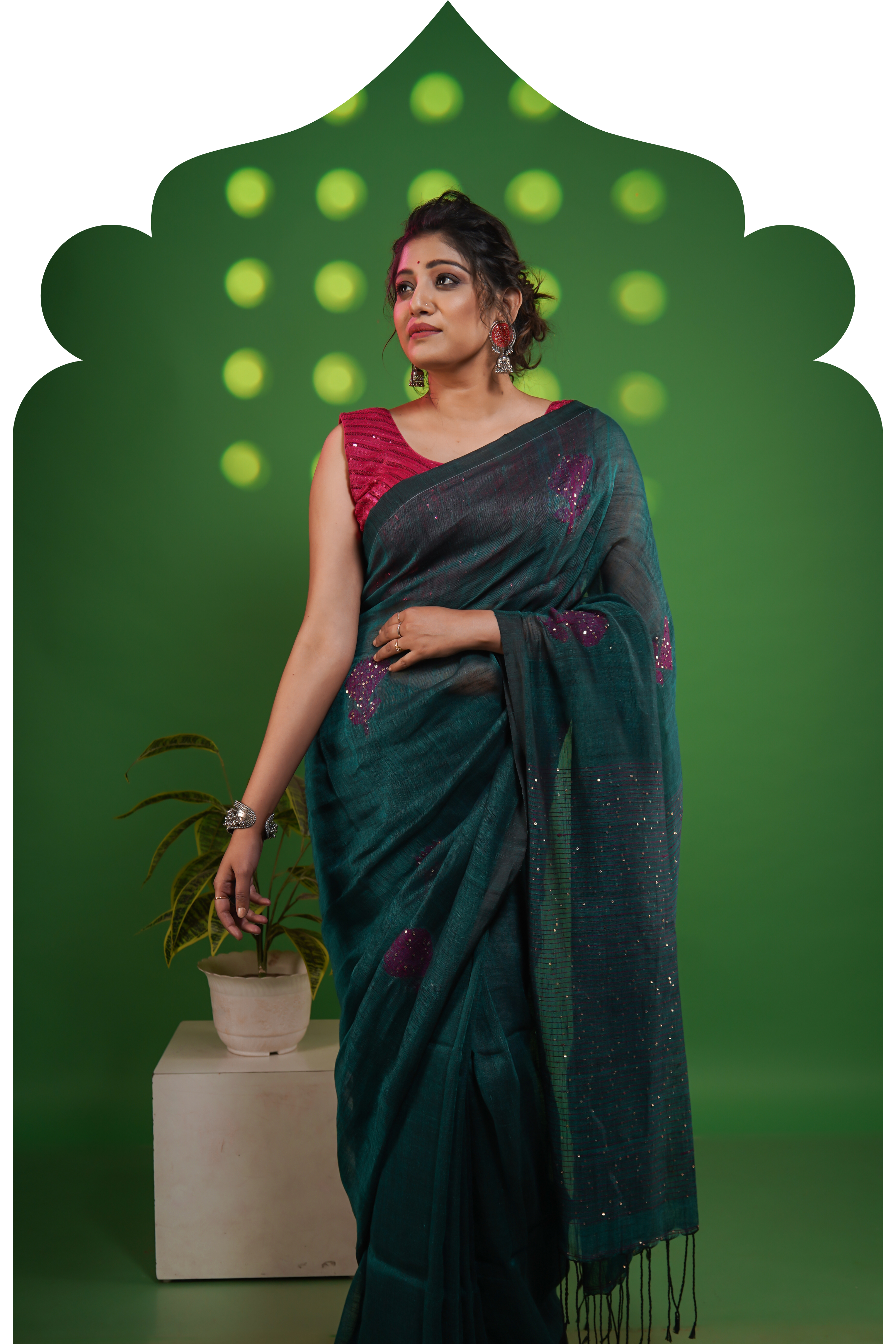We blend timeless traditions with contemporary designs, creating sarees that resonate with modern women. Each piece is crafted to balance heritage and modernity, making it perfect for today’s versatile wardrobe.