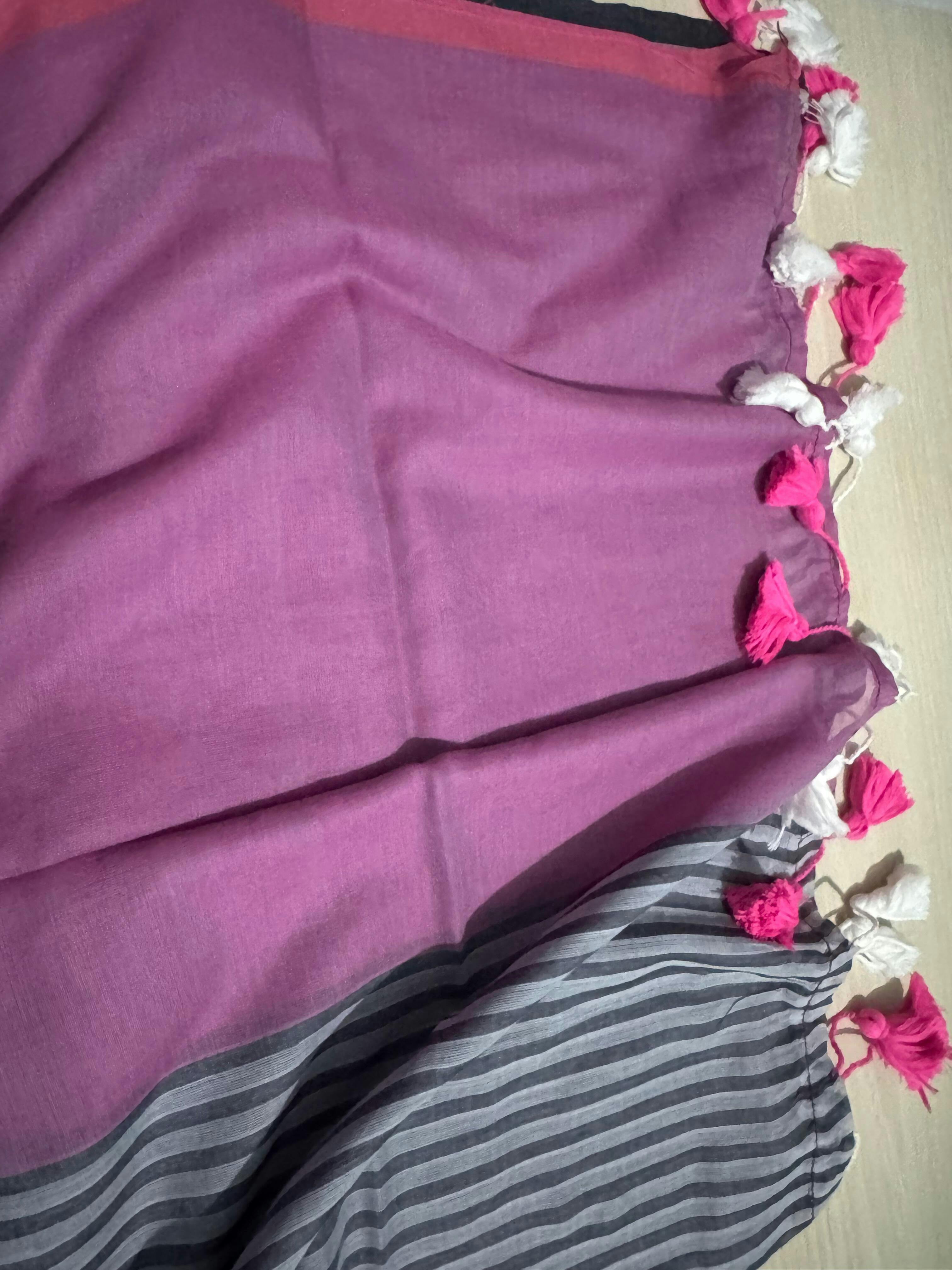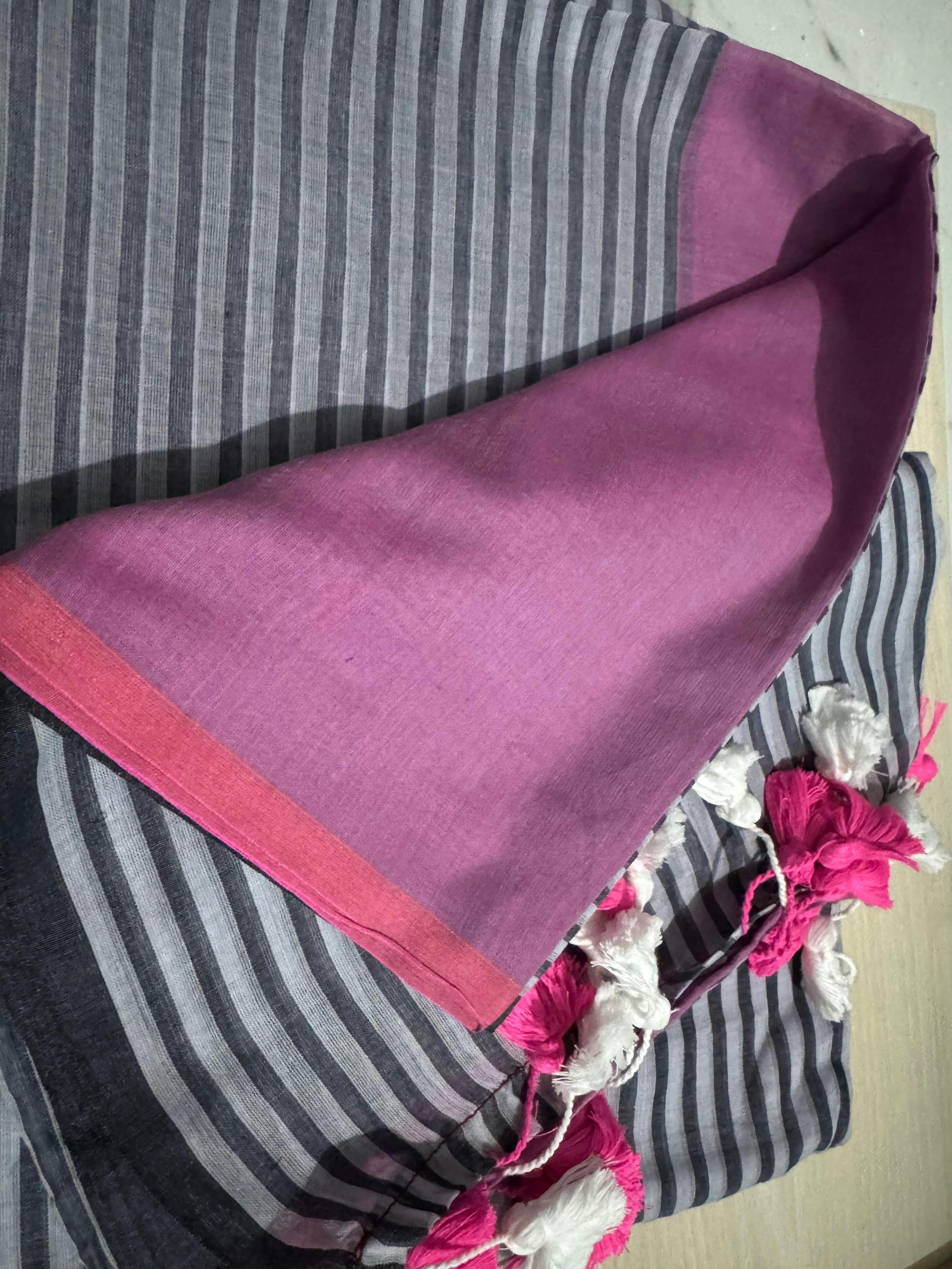 Baby Pink Half-half Check Mul Cotton saree with Blouse piece