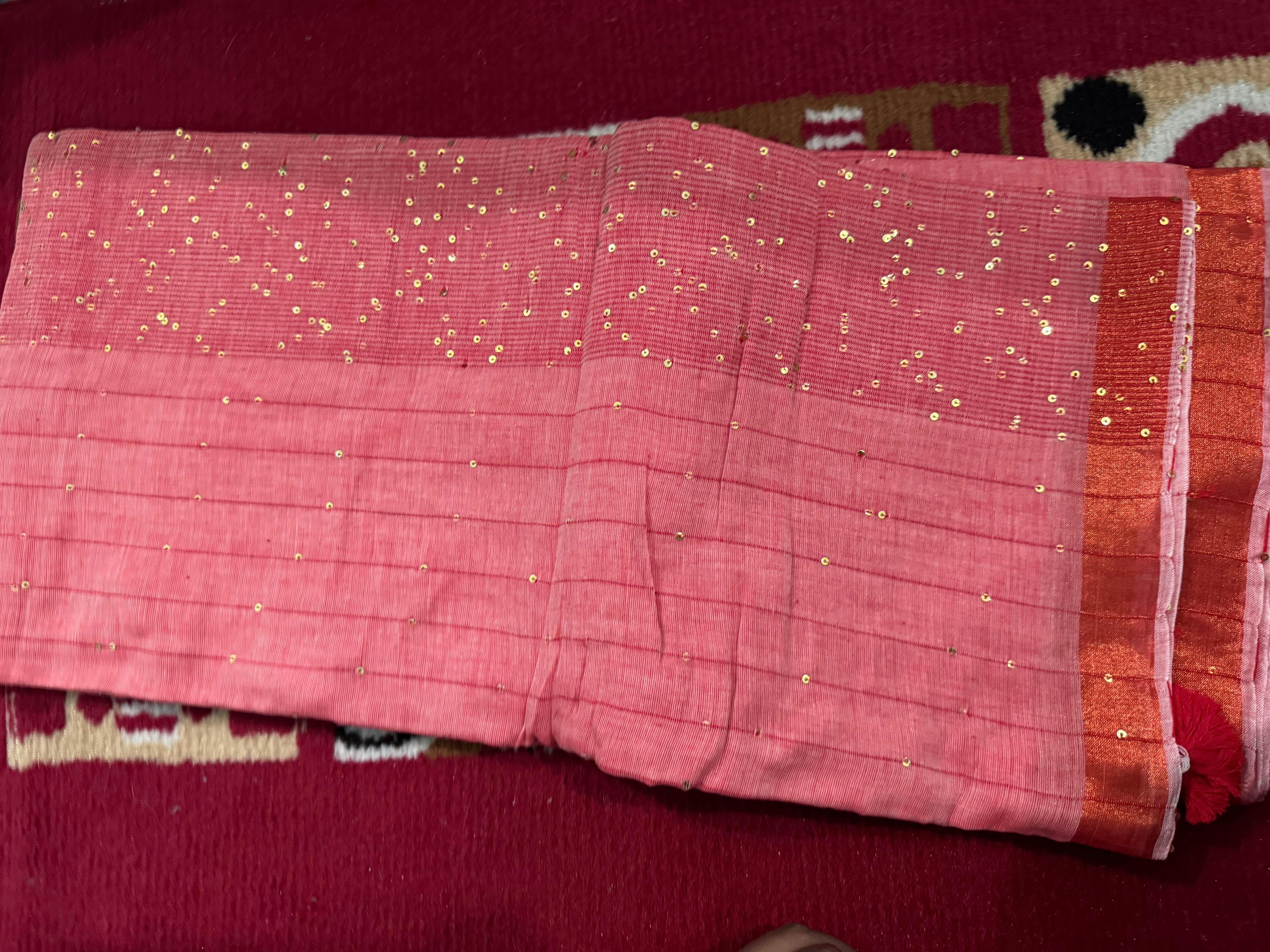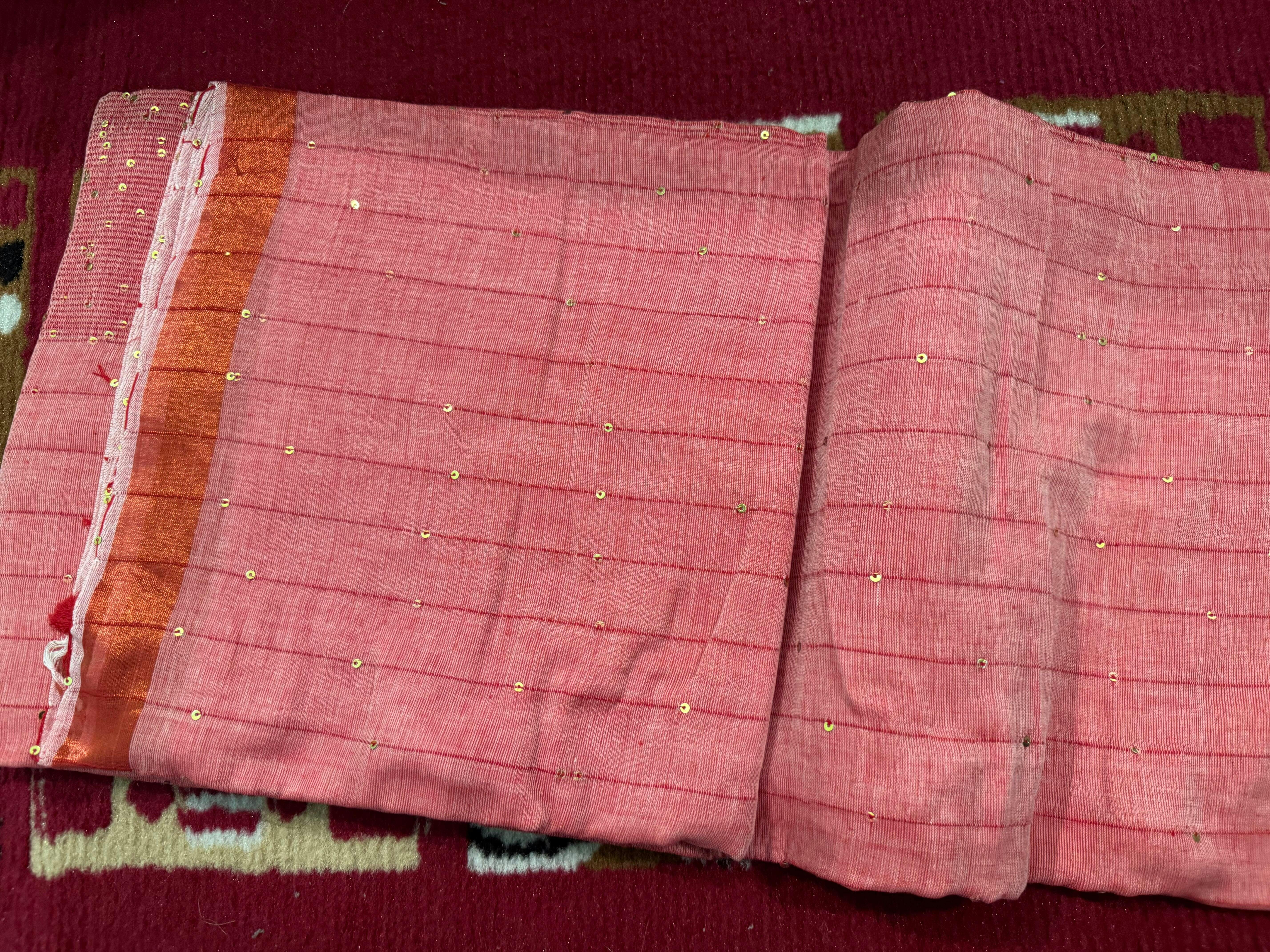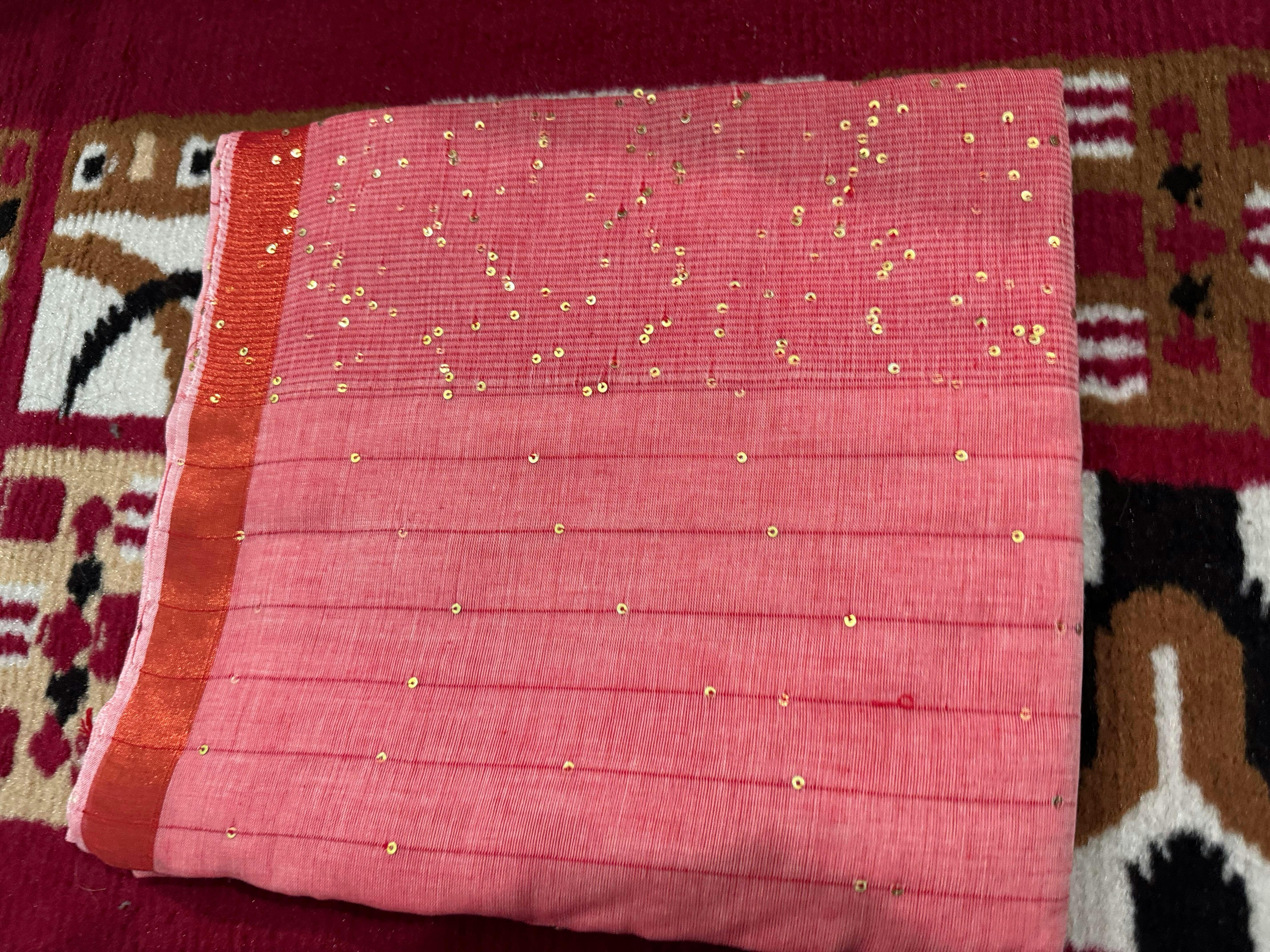 Salmon Pink Mohini sequence work Mulmul Cotton Saree